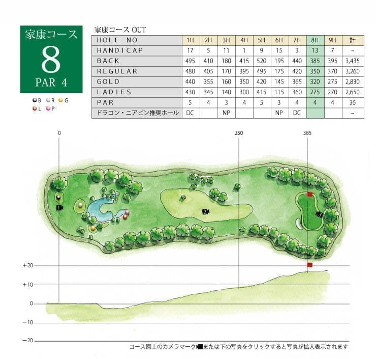 打ち上げのミドルホール。ティーショットは右に出やすいので注意しましょう。セカンドショットはワンクラブ半あげると良いでしょう。 前へ 次へ 家康OUT 1H 2H 3H 4H 5H 6H 7H 8H 9H 家康IN 10H 11H 12H 13H 14H 15H 16H 17H 18H 竹千代OUT 1H 2H 3H 4H 5H 6H 7H 8H 9H 竹千代IN 10H 11H 12H 13H 14H 15H 16H 17H 18H