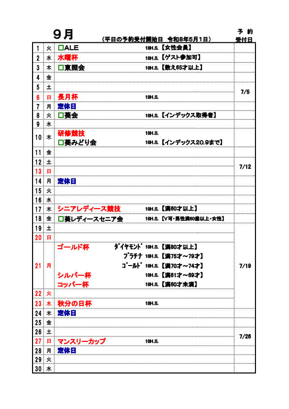 競技日程09月